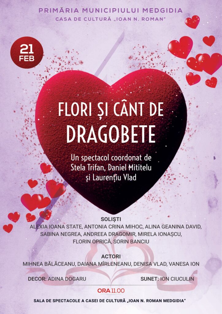 În așteptarea sărbătorii iubirii, vă invităm să vă bucurați și să vă delectați cu cântece, dansuri, scurte scenete și momente umoristice cu tematică de Dragobete, pregătite de echipa Casei de Cultură „I. N. Roman” pentru ziua de sâmbătă, 21 februarie 2026.